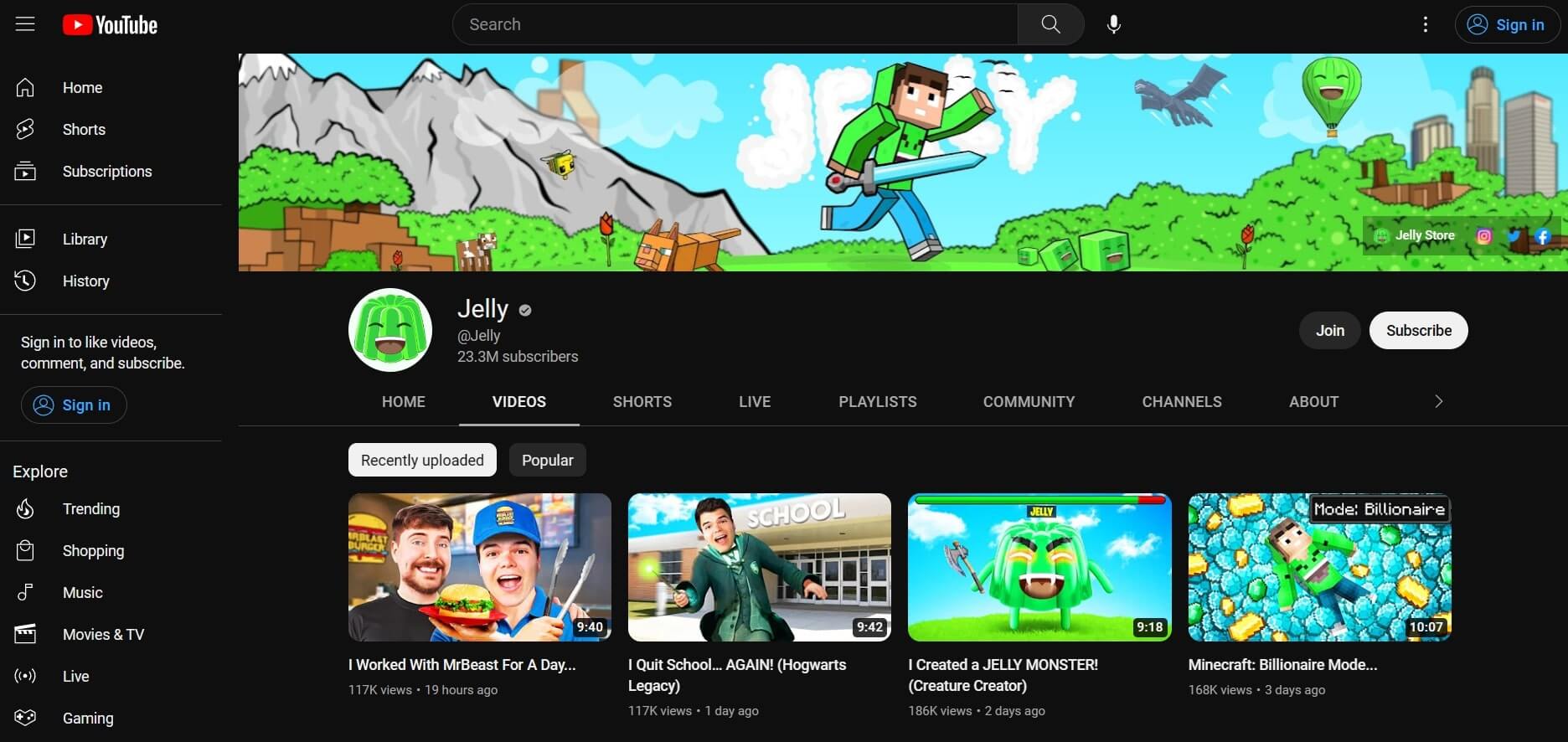 Jelly’s fast-paced, comedic gaming style has made him one of the most-viewed creators in titles like GTA V and Minecraft. His collaborative history with other creators helped amplify his reach early on.