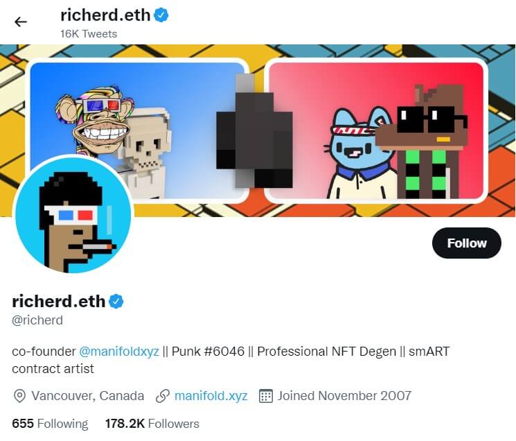 Richerd Chan is the co-founder of Manifold.xyz, a platform enabling creators to mint and manage NFTs independently. He collaborates closely with top digital artists and has played a key role in advancing creator-owned NFT infrastructure.