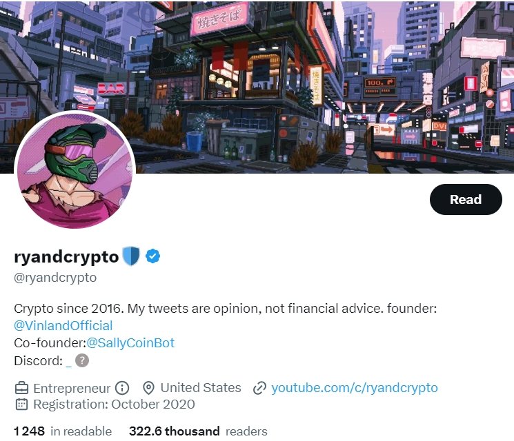 ryandcrypto is an NFT influencer known for transparent commentary on crypto investments and NFT market dynamics. He regularly shares insights into his own trades, discusses emerging projects, and collaborates with brands through giveaways and community activations.