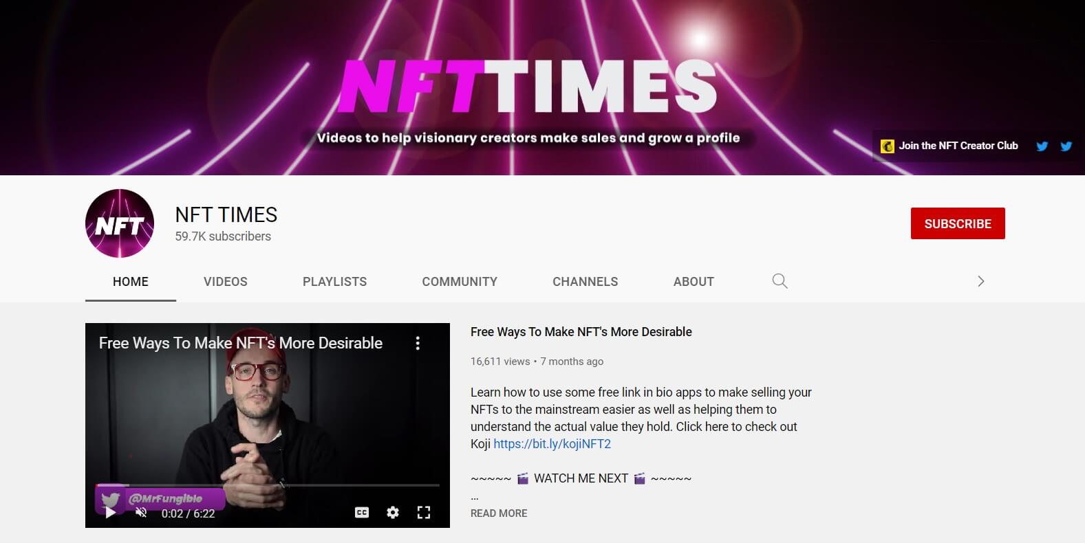 NFT TIMES offers content for both NFT buyers and creators. Led by Mr. Fungible, the channel focuses on helping artists, musicians, and educators monetize digital assets sustainably.