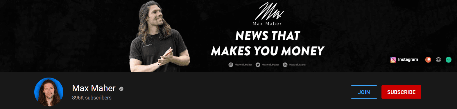 Max Maher combines finance, crypto, and investing education, making him a strong entry point for new users.
